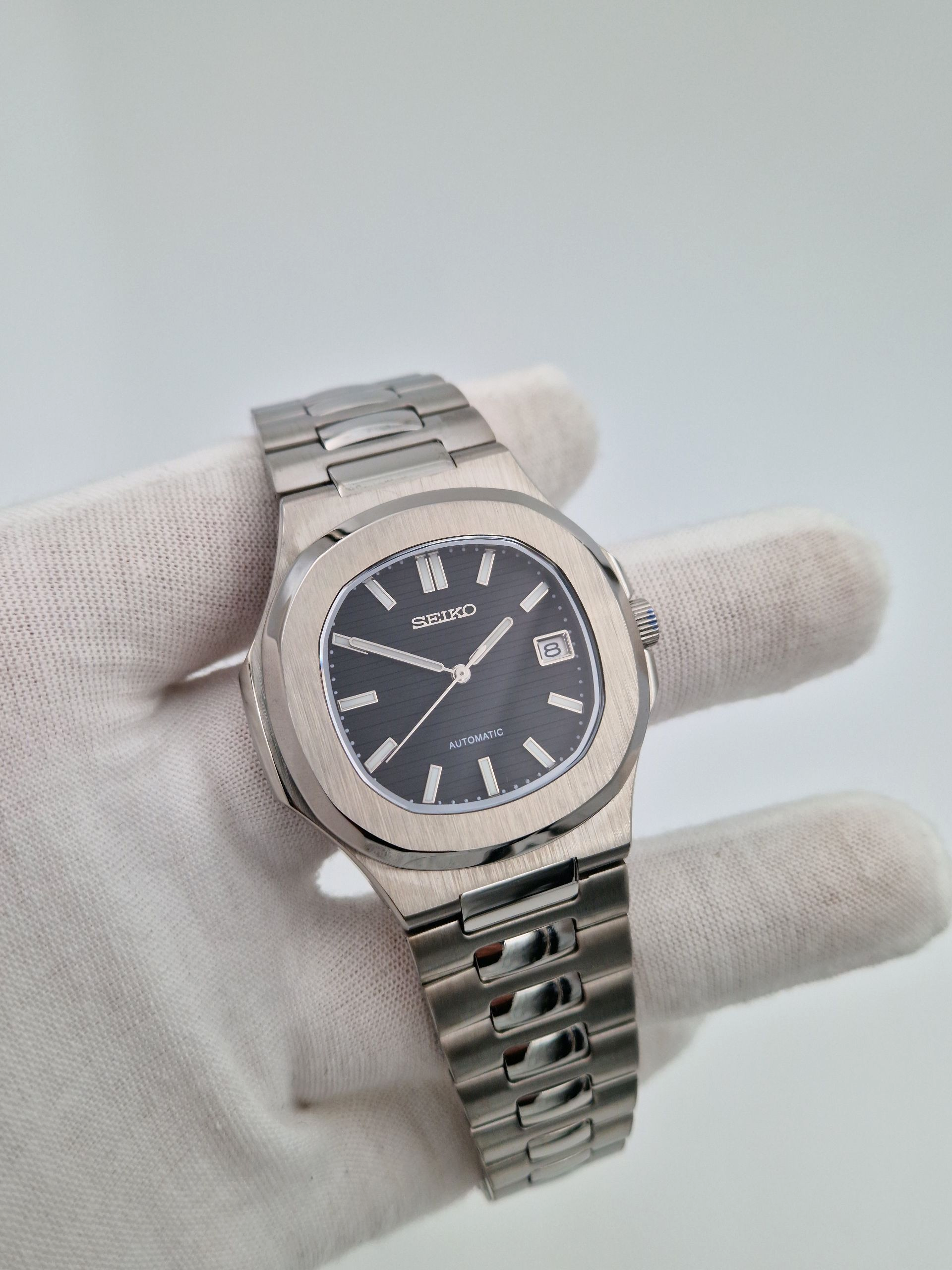 Med sin karaktäristiska boett och eleganta linjer erbjuder denna Nautilus-klocka en perfekt balans mellan sportighet och exklusivitet. Den raffinerade designen och det pålitliga urverket gör den till ett stilfullt val för både vardag och fest. En tidlös ikon med subtil styrka.